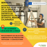 SERVICIO: Acondicionamiento de 03 aulas AIP en el C.P. La Granja y la localidad de La Iraca, distrito Querocoto.