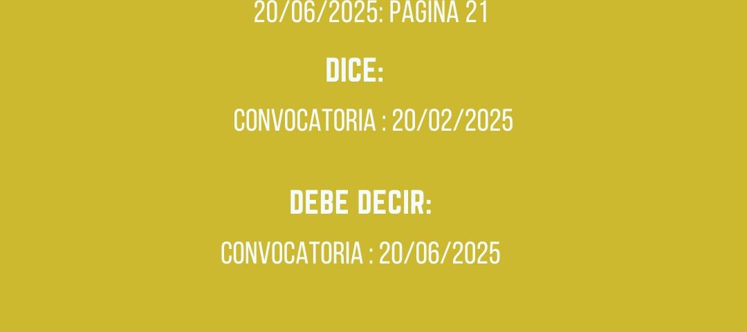 5 de julio de 2025BASE PROCESO DE LICITACIÓN PÚBLICA 001-2025, DE FECHA 20 06 2025 PÁGINA 21 DICE: CONVOCATORIA 20/02/2025 DEBE DECIR: CONVOCATORIA 20/06/2025.