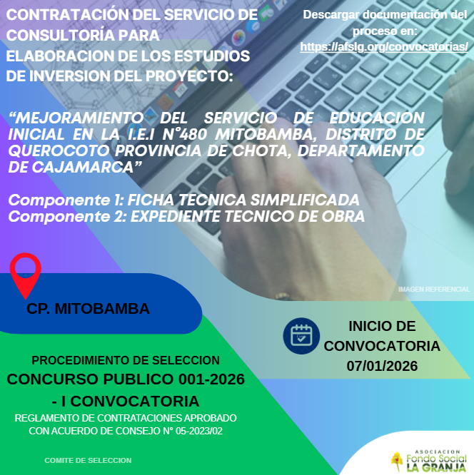 El Fondo Social La Granja (FSLG) es una asociación civil sin fines de lucro, creada para transformar los recursos generados por la actividad minera en proyectos sociales sostenibles que beneficien directamente a la población del distrito de Querocoto, provincia de Chota, región Cajamarca.