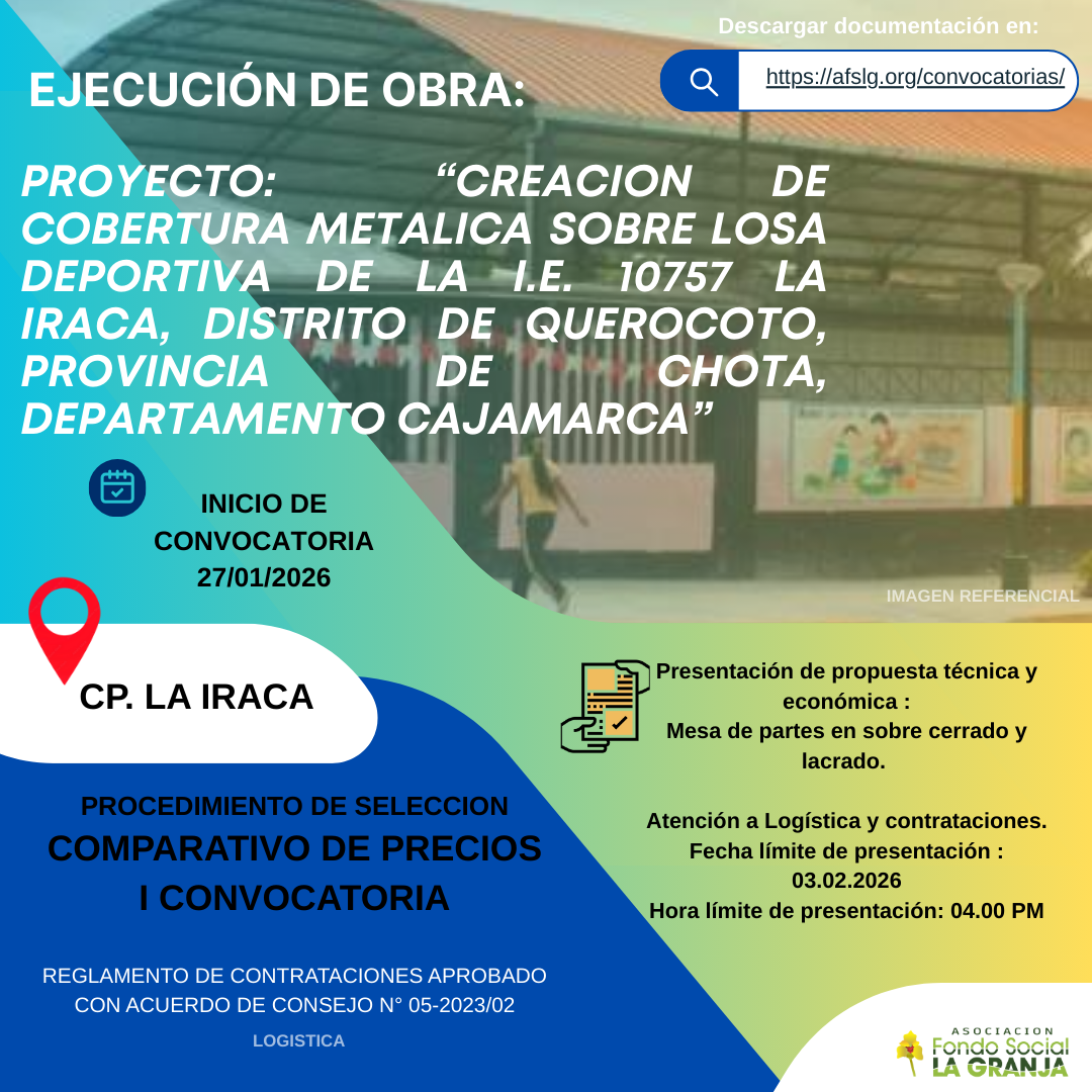 EJECUCIÓN DE OBRA: PROYECTO «Creación de cobertura metálica sobre losa deportiva de la I.E. El Sauce, distito de Querocoto, Chota, Departamento de Cajamarca».