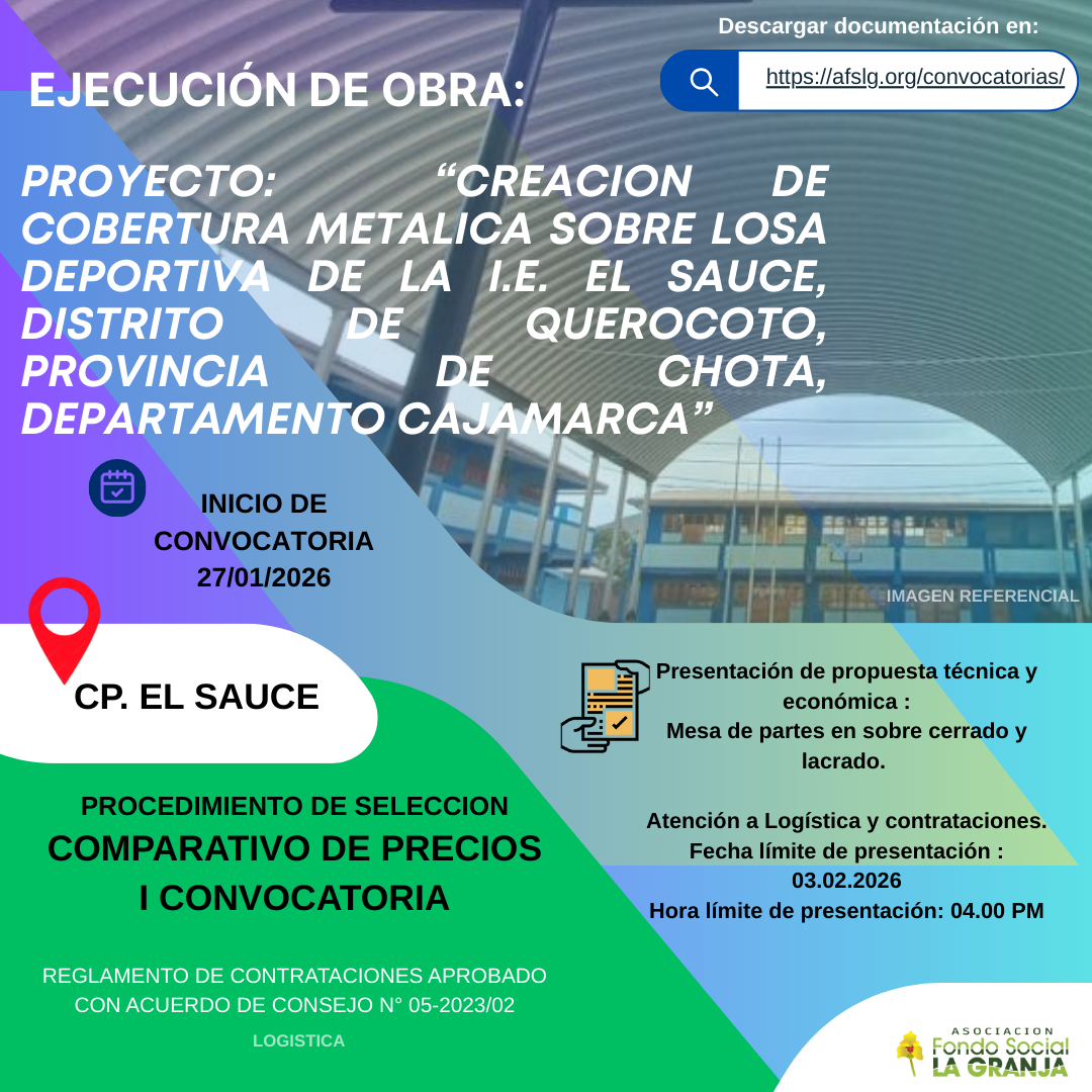 EJECUCIÓN DE OBRA: PROYECTO » Creación de Cobertura metálica sobre losa deportiva de la I.E. 10757 La Iraca, distrito de Querocoto, provincia de Chota, departamento de cajamarca»