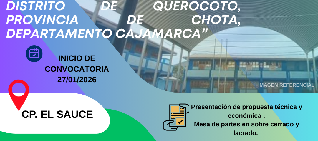 CONVOVOCATORIA: Contratación del servicio de consultoría para elaboración de los estudios de inversión del proyecto: “Mejoramiento del Servicio de Educación Inicial en la I.E.I. N°480 Mitobamba, distrito de Querocoto provincia de Chota, departamento de Cajamarca.