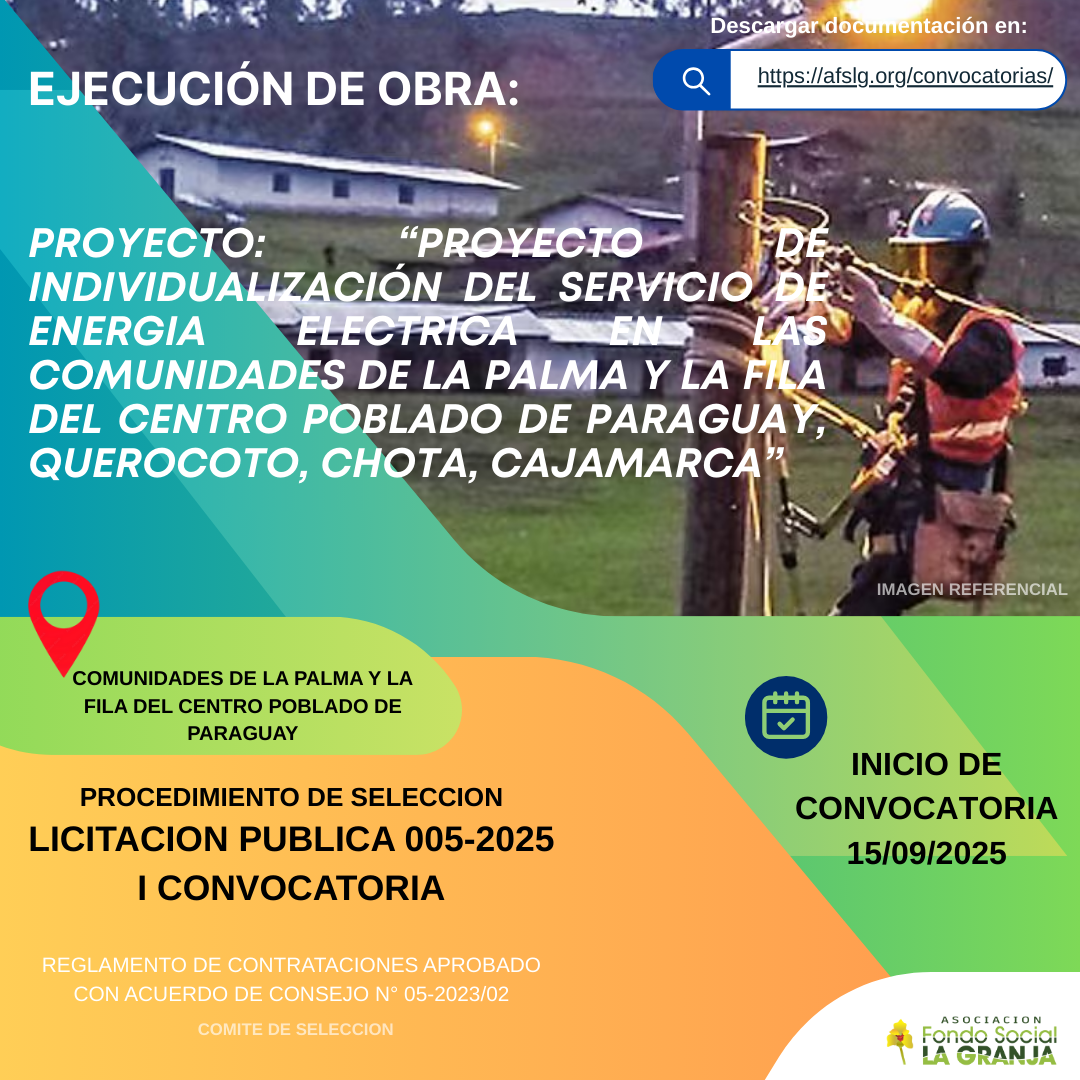 SERVICIO – Consultoría de obra para la supervisión de ejecución de obra del Proyecto: Obras Complementarias al Proyecto Mejoramiento del Servicio de Transitabilidad Vehicular y Peatonal en el Centro Poblado de Paraguay – Querocoto.