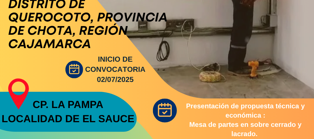 SERVICIO: Acondicionamiento de 03 aulas AIP en el C.P. La Granja y la localidad de La Iraca, distrito de Querocoto.19 de junio de 2025EJECUCION DE OBRA: Proyecto – Creación de servicio de provisión de agua para riego en La Iraca del C.P. La Granja, distrito de Querocoto.19 de junio de 2025 Published by admin on 19 de junio de 2025 Categories Convocatorias Noticias Tags 2B.-TDR ACONDICIONAMIENTO 3 AULAS LA PAMPA EL SAUCE(corregido)Descarga REGLAMENTO DE CONTRATACIONES DE LA AFSLGDescarga MODELOS DE ANEXOSDescarga Share0 admin Related posts29 de septiembre de 2025SERVICIO: Consultoría para la implementación de Proyecto Impulso Comercializador Sostenible a la Actividad Artesanal de las Tejedoras de la Zonal II y Zonal III.Read more24 de septiembre de 2025SERVICIO – Consultoría de obra para la supervisión de ejecución de obra del Proyecto: Obras Complementarias al Proyecto Mejoramiento del Servicio de Transitabilidad Vehicular y Peatonal en el Centro Poblado de Paraguay – Querocoto.Read more15 de septiembre de 2025EJECUCIÓN DE OBRA – PROYECTO: Individualización del servicio de energía eléctrica en comunidades de La Palma y La Fila del centro poblado de Paraguay, Querocoto.Read more Comments are closed.